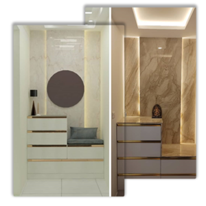 LED fixtures, strip lights, and mirrors not only save electricity but also add a sleek, modern aesthetic. At PlanMySpace, we incorporate LED mirrors in bathrooms and wardrobes that combine style with functionality.